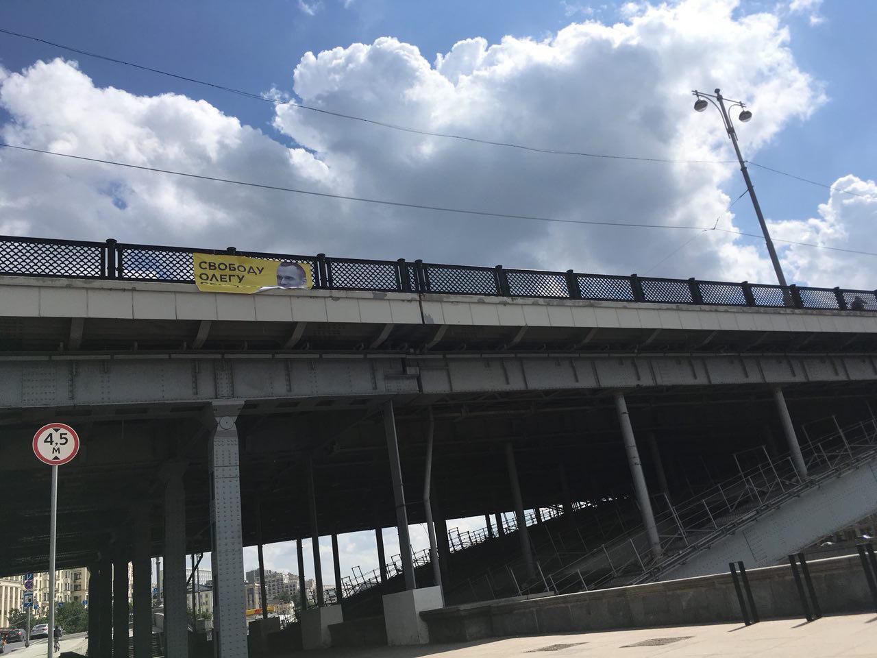 Активісти повісили на Великому Устьїнському мосту біля висотки на Котельницькій набережній банер зі словами: “Свободу Олегу Сенцову!”, повідомляють російські ЗМІ.